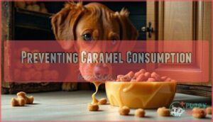 You can protect your dog from caramel-related health issues by keeping all caramel products stored securely out of reach and training your family members to avoid sharing human treats.