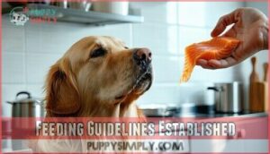 When determining how much cooked fish skin to give your dog, think of it like adding sprinkles to ice cream—a little goes a long way. Following proper Daily Limits guarantees your pup gets the benefits without overdoing it.