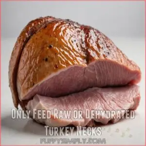 Regarding turkey neck bones, you should stick to raw, freeze-dried, or dehydrated options since cooked bones can splinter and harm your dog.