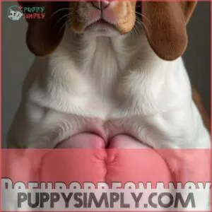 When your dog’s heat cycle kicks into gear, her nipples might become slightly more pronounced. Normal dog nipples typically show minimal inflammation, with gentle swelling that doesn’t cause significant discomfort. Breed variations can impact nipple appearance, so what’s normal for a Chihuahua might differ from a Great Dane.