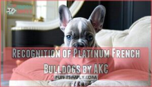 The American Kennel Club (AKC) doesn’t officially recognize Platinum French Bulldogs as a distinct color. They’re classified as “Cream” due to the AKC’s breed standards focusing on health and structure, not exotic hues.